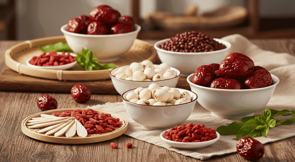 Si les mooncakes séduisent autant, c’est aussi parce que leurs garnitures ne sont pas choisies au hasard. En Chine, chaque ingrédient porte une symbolique et une fonction particulière, héritée de la médecine traditionnelle. Parmi eux, certains se distinguent tout particulièrement — par exemple les graines de lotus (Lian Zi 莲子), les fruits de jujube (Da Zao 大枣) ou encore le sésame noir (Hei Zhi Ma 黑芝麻).
