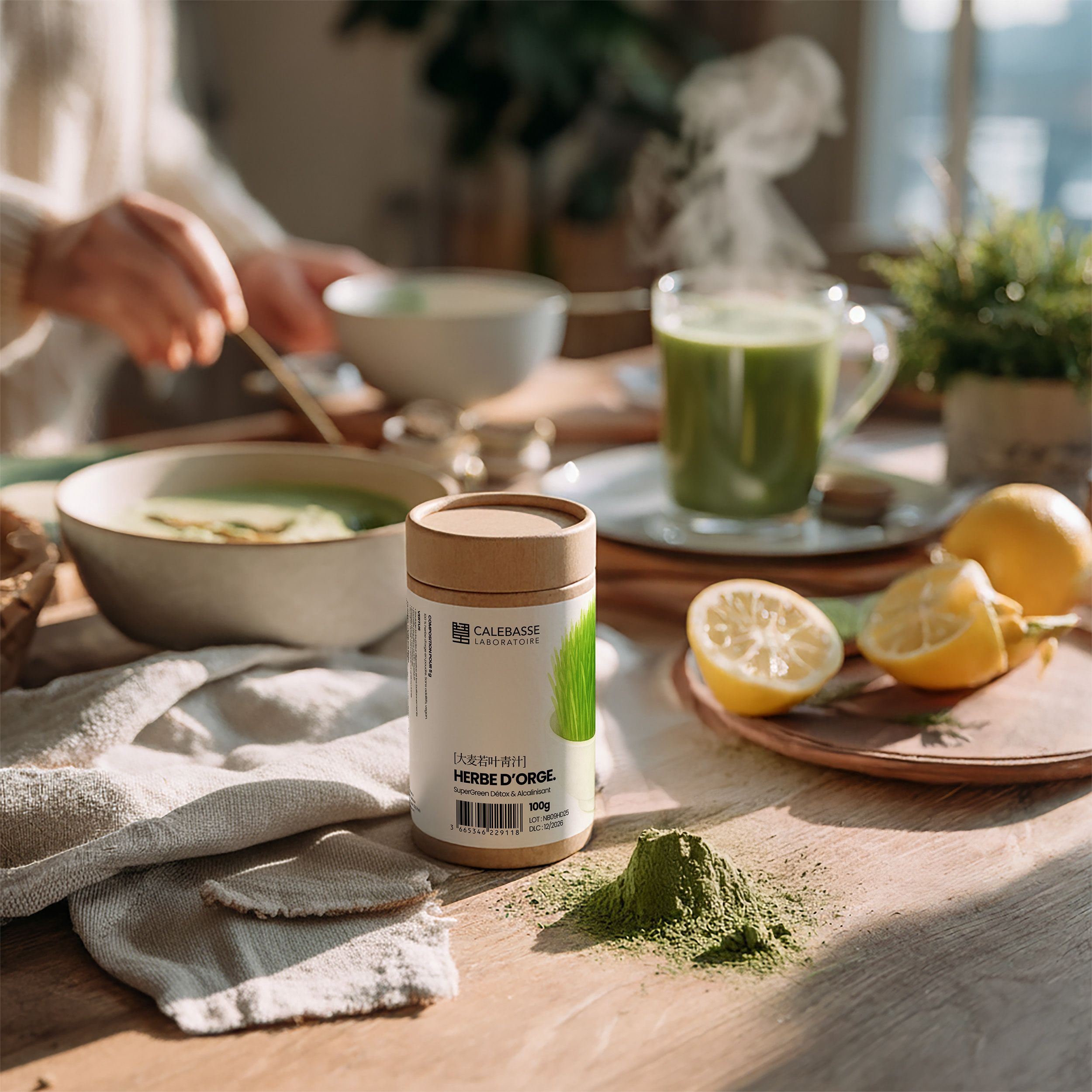 Particularly useful after celebrations, rich meals, short nights, or during detox programs, barley grass acts as a gentle rebalancer for the body. It helps counteract acidic excesses (from diet, stress, coffee, or sugar) and restores a natural sense of lightness.