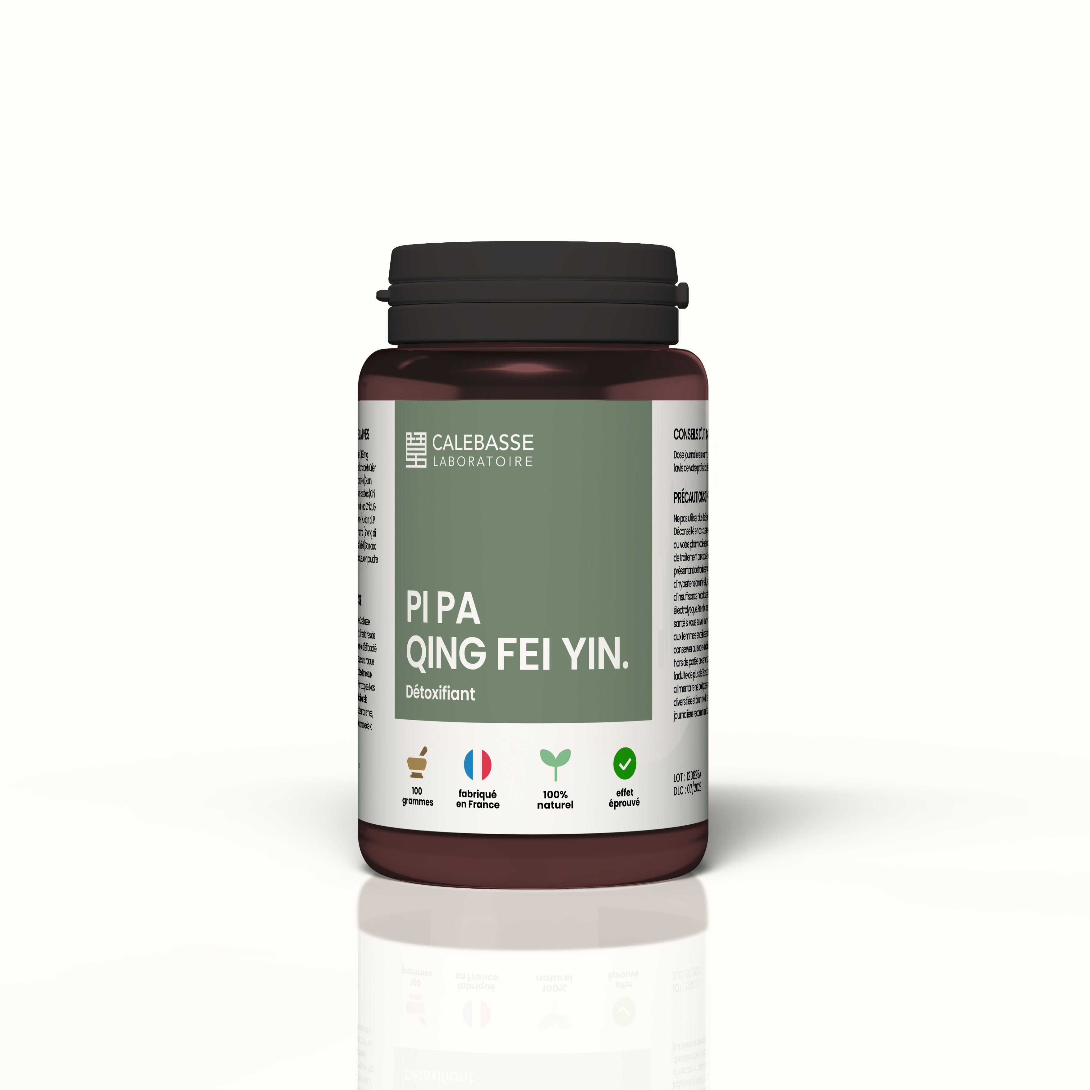 When perverse energies attack lungs, they cause respiratory troubles and skin sensitivities. Pi pa qing fei yin is a traditional detox formula that removes toxins in the lungs, vivifies blood and clears Dampness-Heat. It is very efficient to clear respiratory tract and purify the skin to soothe the cutaneous discomforts.