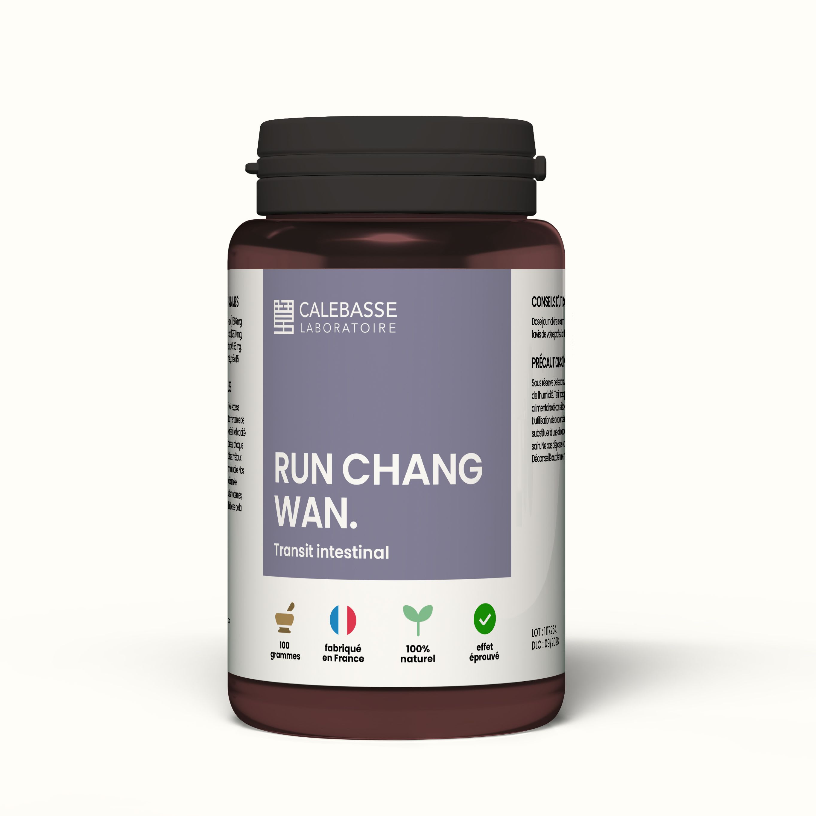 Developed to relieve discomfort caused by difficult digestion, Run chang wan is composed of several herbs that act synergistically to stimulate transit in order to unblock stools, and that promote the production of body fluids to moisten the intestines. Thus, this formula gently relieves constipation and disorders affecting the intestines.