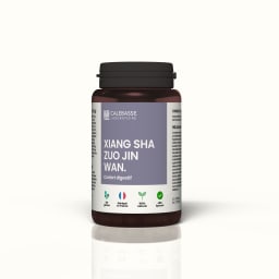 Composition for 6 capsules (3 g): Amomum villosum 0.27 g, Atractylodes macrocephala 0.17 g, Citrus reticulata 0.18 g, Poria cocos 0.27 g, Cyperus rotundus 0.18 g, Citrus aurantium 0.72 g, Magnolia officinalis 0.18 g, Pogostemon cablin 0.18 g, Glycyrrhiza uralensis 0.09 g, Lysimachia vulgaris 0.31 g, Artemisia capillaris 0.27 g, Scutellaria baicalensis 0.18g. Aqueous dry extract in concentrated powder, titrated at 1:5, pullulan vegetarian capsules.