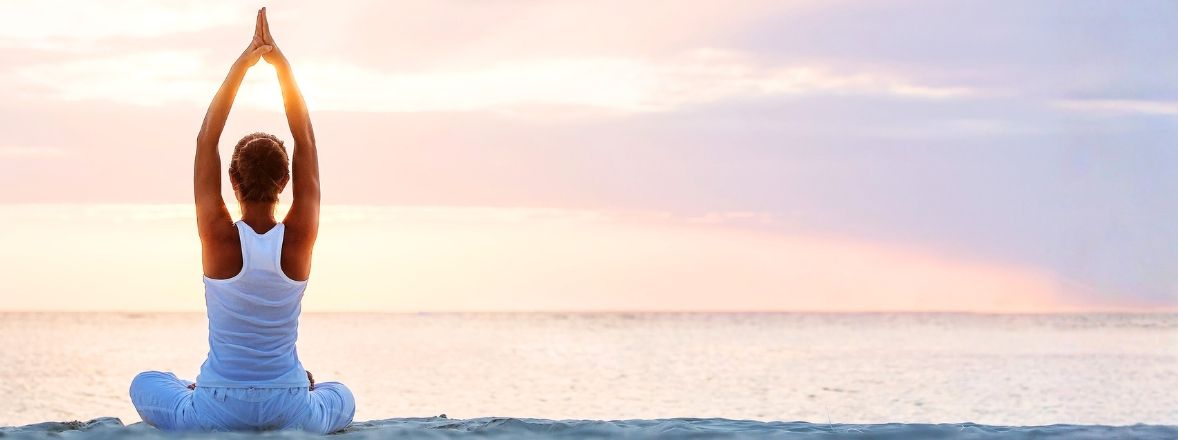 Femme yoga plage