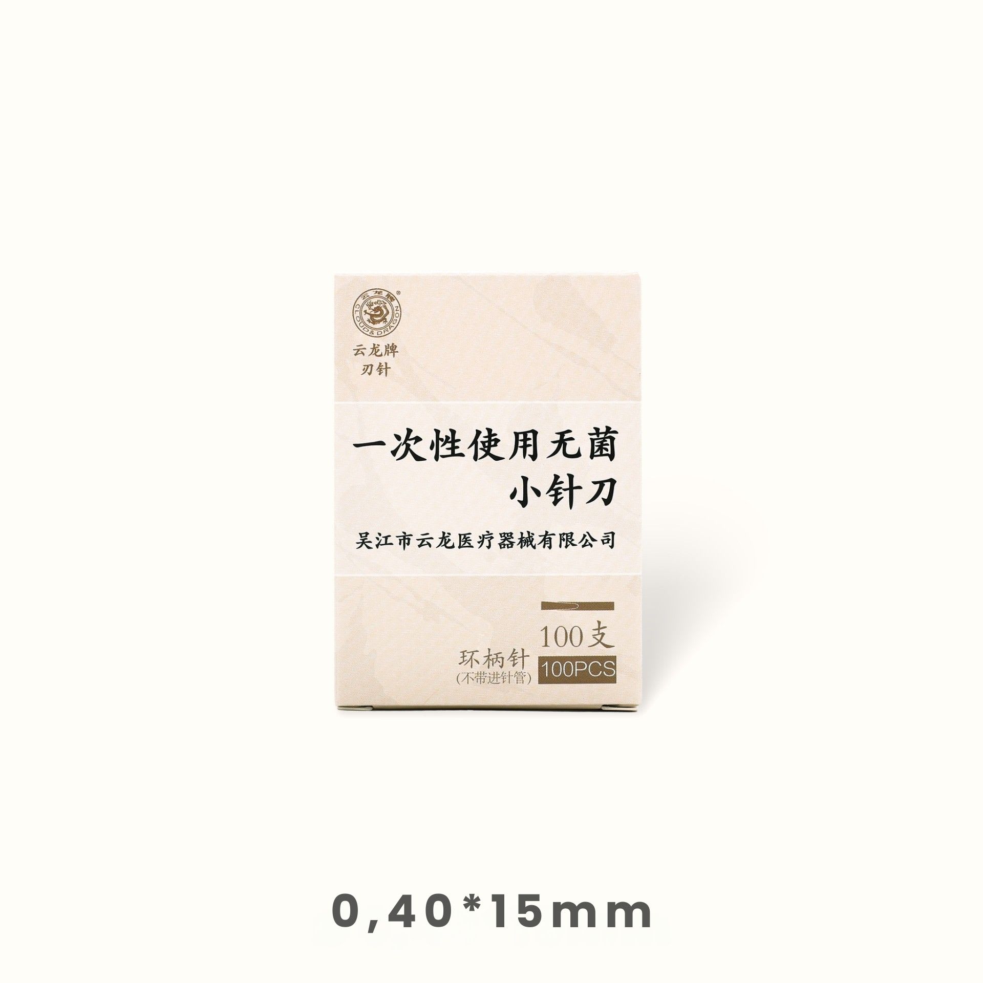 Une boite contient 100 aiguilles couteau à usage unique avec manche en acier inoxydable de haute qualité. Taille : 0,40 x 15.