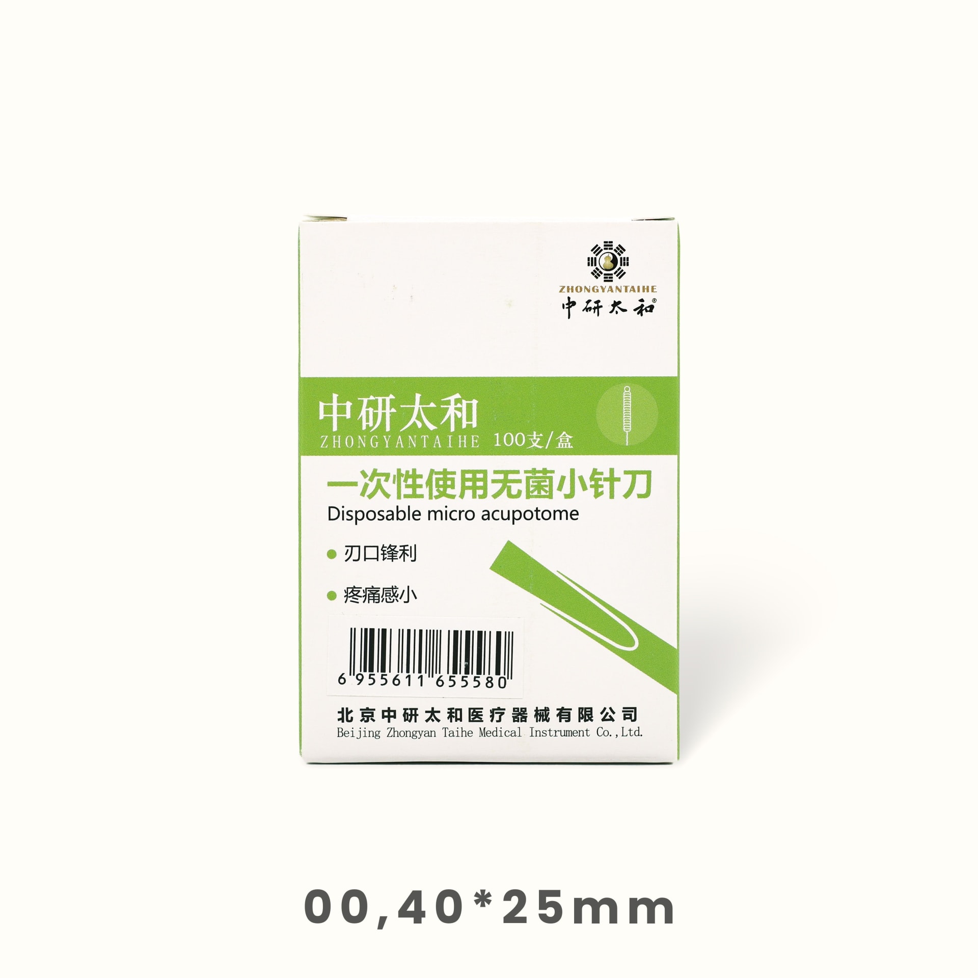 Une boite contient 100 aiguilles couteau à usage unique avec manche en acier inoxydable de haute qualité. Taille : 0,40 x 25.