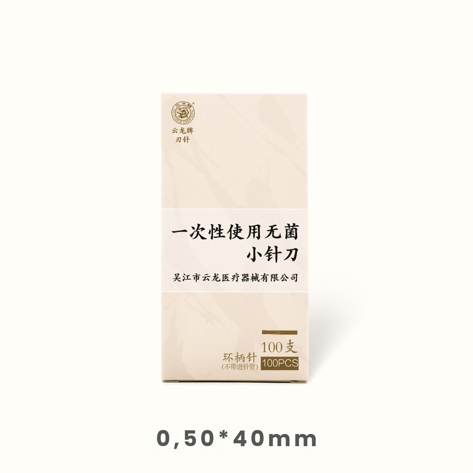 Une boite contient 100 aiguilles couteau à usage unique avec manche en acier inoxydable de haute qualité. Taille : 0,50 x 40.