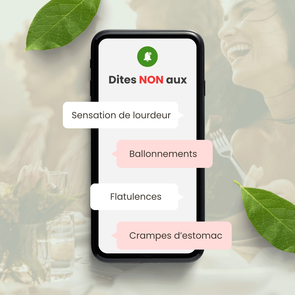 Que ce soit après un barbecue estival entre amis, un repas de fête en famille, ou un dîner d'affaires, il arrive souvent que l'on se laisse tenter par la richesse des plats proposés. Avec notre Formule Digestion, vous avez la solution idéale pour profiter pleinement de ces moments sans craindre les troubles digestifs d’une digestion difficile qui pourraient suivre. Notre formule 100% naturelle est spécialement conçue pour vous favoriser une digestion facile et rapide, vous permettant de vous concentrer sur ce qui compte vraiment : profiter pleinement de chaque moment spécial sans souci.