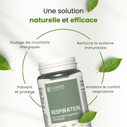 - Soulagement des inconforts liés aux allergies : Respiration diminue naturellement les désagréments comme les éternuements, l'écoulement nasal, la congestion, et les démangeaisons. Grâce aux propriétés apaisantes de la Cloche dorée et du Chrysanthème, ce produit aide à calmer l'irritation et à réduire la présence d'allergènes.