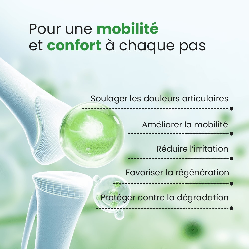C’est pour répondre à ces diverses causes que notre Formule Articulation a été conçue. Elle vise à soutenir et à soulager ces douleurs articulaires et à aider à régénérer le cartilage de vos articulations fatiguées, vous offrant ainsi un soulagement durable et une meilleure qualité de vie.