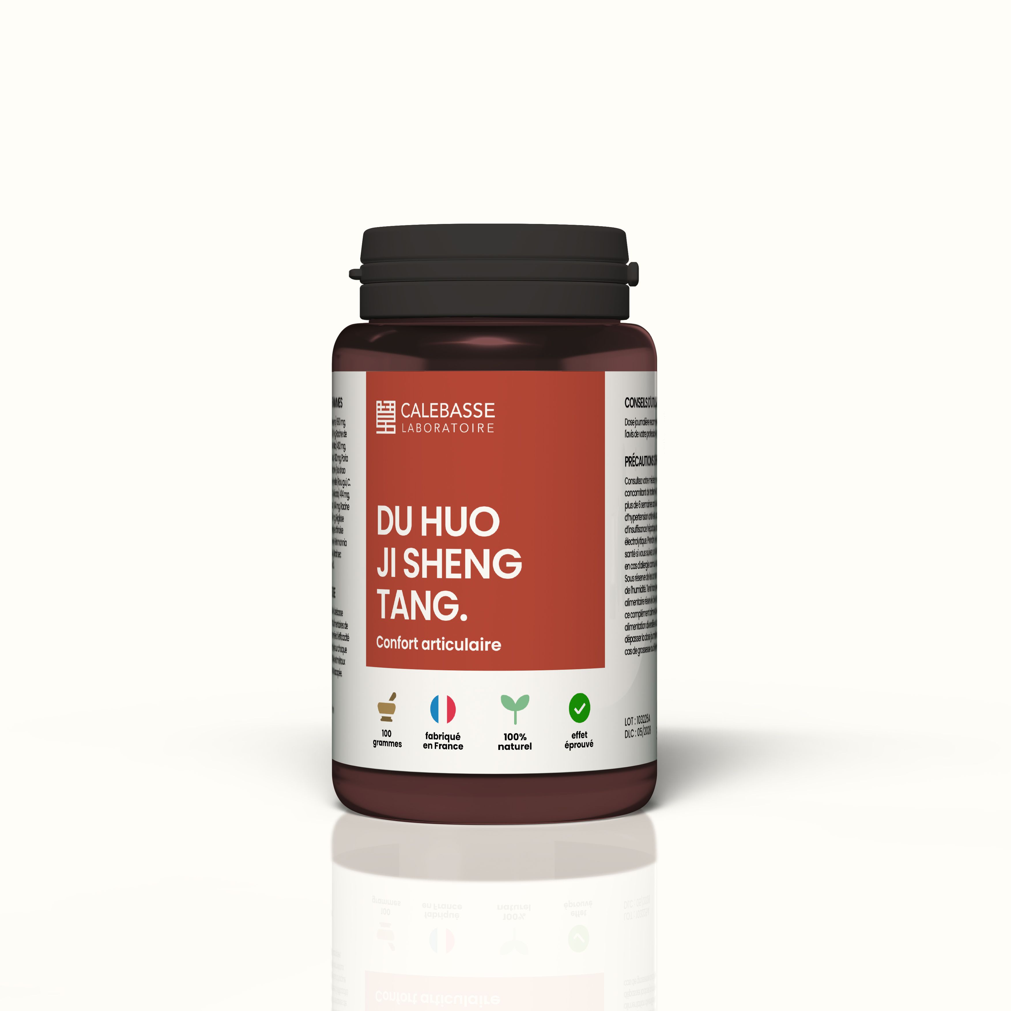 Composée notamment de l'angélique chinoise (Dang gui ) et la silère ( Fang Feng ), toutes deux réputées pour leurs bienfaits sur la santé articulaire, Du huo ji sheng tang est une solution naturelle pour retrouver le confort.