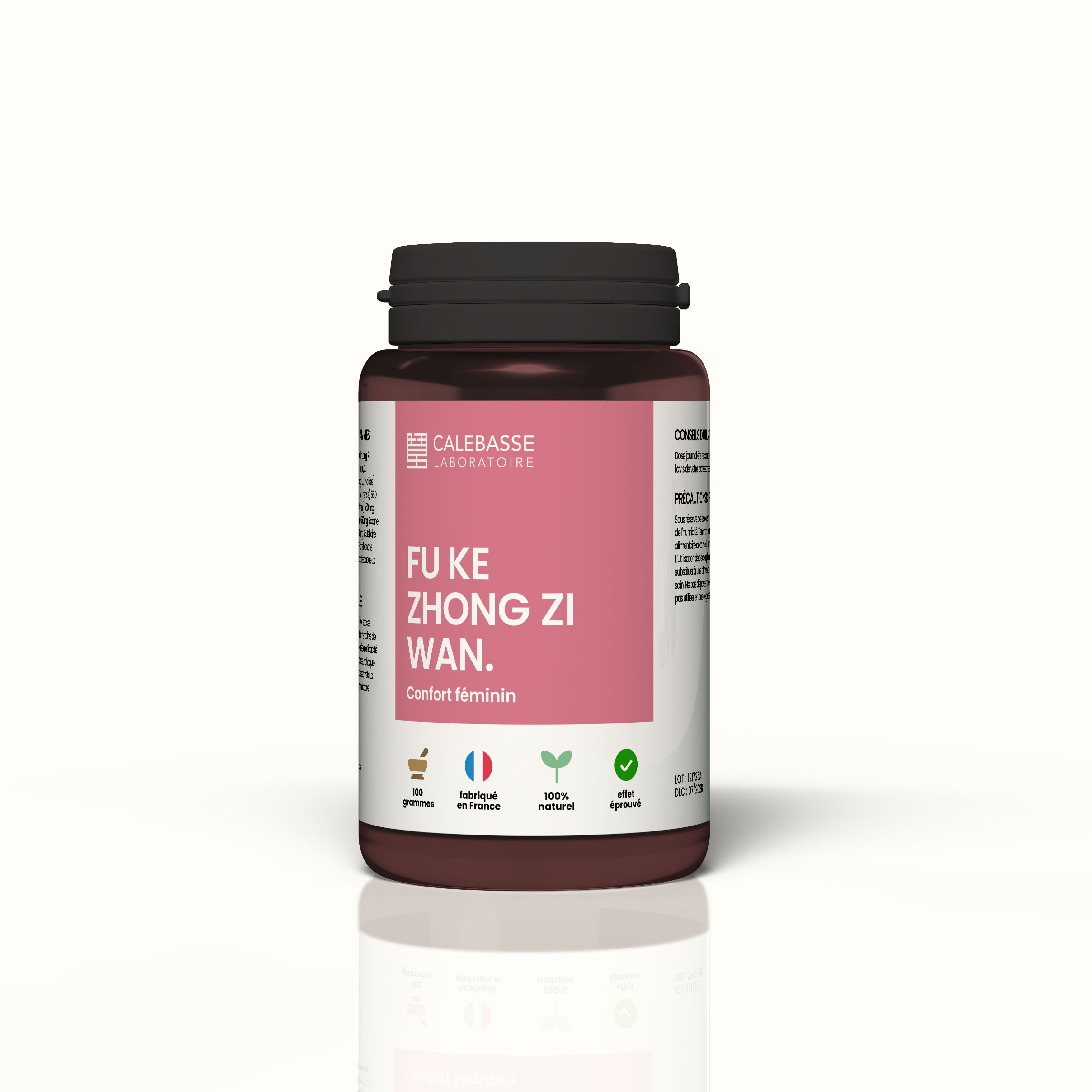 Composition pour 6 gélules (3 g) : Rehmannia glutinosa 750 mg, Cyperus rotundus 380 mg, Eucommia ulmoides 380 mg, Angelica sinensis 280 mg, Artemisia abrotanum 280 mg, Ligusticum striatum 280 mg, Dipsacus fullonum 280 mg, Scutellaria baicalensis 190 mg, Paeonia lactiflora 190 mg.