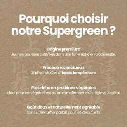 Dans un quotidien souvent trop rapide, acidifiant et pauvre en légumes verts, les supergreens offrent un geste simple pour ramener plus de vitalité, de légèreté et d’équilibre dans l’alimentation. Leur pouvoir alcalinisant, leur richesse en micronutriments et leur format en poudre pratique en font des alliés naturels pour :