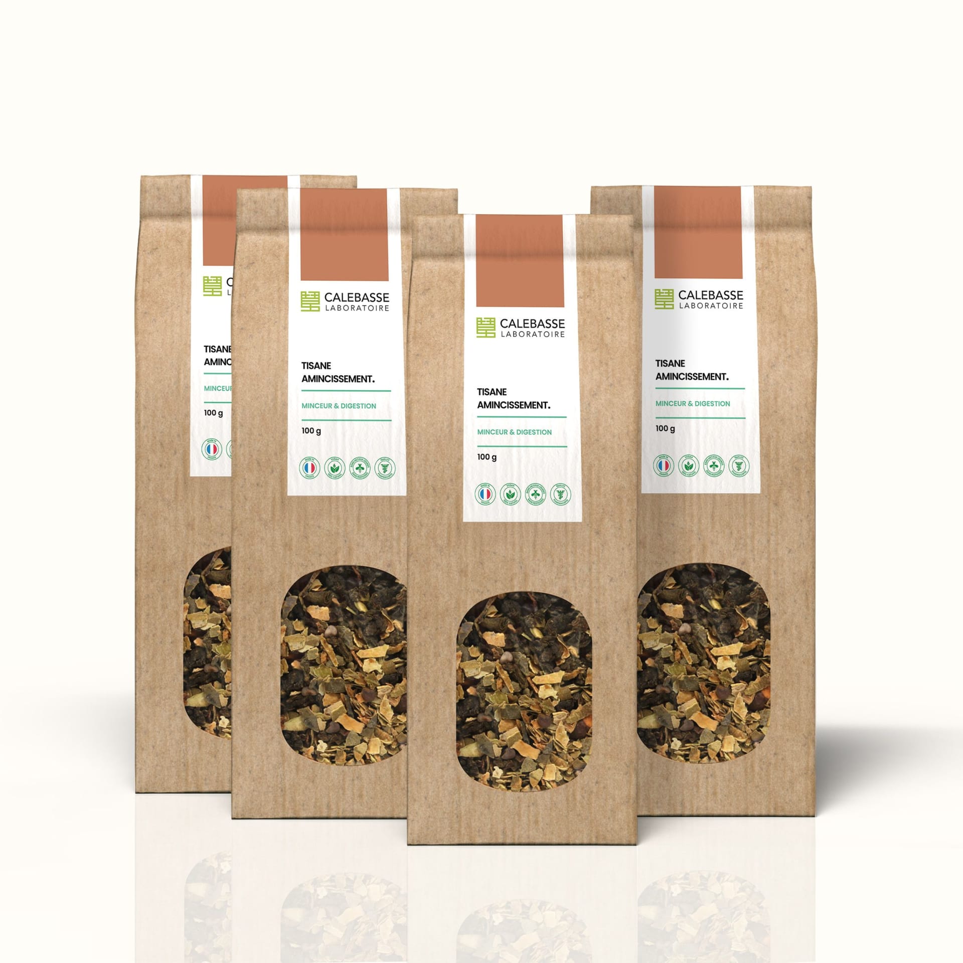 La Tisane Amincissement (Jian fei cha en chinois) est un mélange de plantes élaboré par notre laboratoire. Composée de quatre plantes chinoises : Peau de courge cireuse (Dong gua pi), Mauve frisée (Dong kui zi), graines de Guarana et feuilles de Thé vert (Lü cha), elle est une alliée pour perdre du poids sainement.