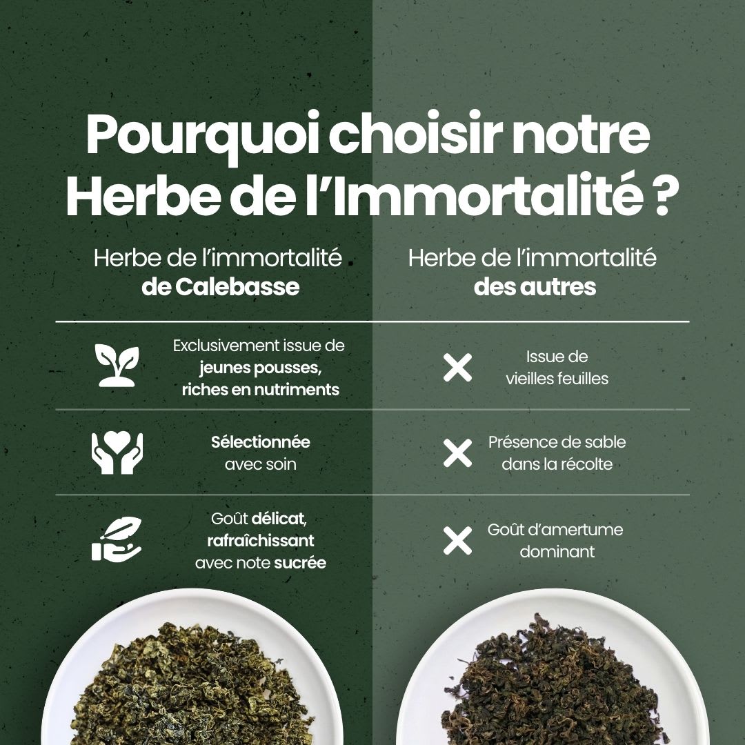 Selon les principes de la médecine traditionnelle chinoise, Jiao gu lan soutient le Qi (énergie vitale) et ajuste les équilibres internes, améliorant ainsi la santé globale et le bien-être. Ses propriétés adaptogènes en font une aide précieuse pour s'adapter au stress du quotidien et renforcer la capacité naturelle du corps à se régénérer. Dans les traditions asiatiques, l'Herbe de l'immortalité est souvent associée à la longévité et à la vigueur. Consommer cette plante, c'est embrasser une philosophie de vie centrée sur l'équilibre et la santé prolongée. Cette plante n'est pas seulement un remède; elle est une invitation à adopter un style de vie conscient et équilibré, respectueux des cycles naturels et des besoins du corps.