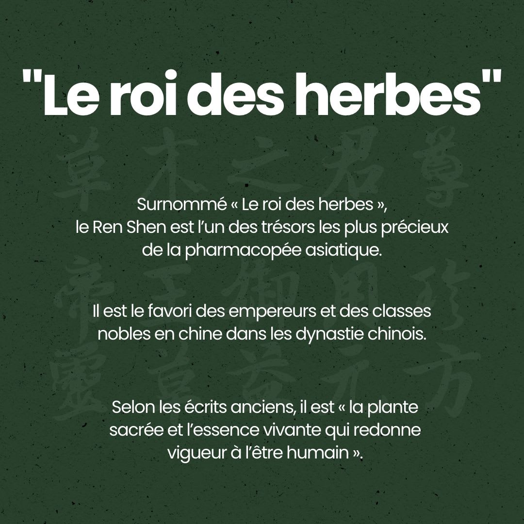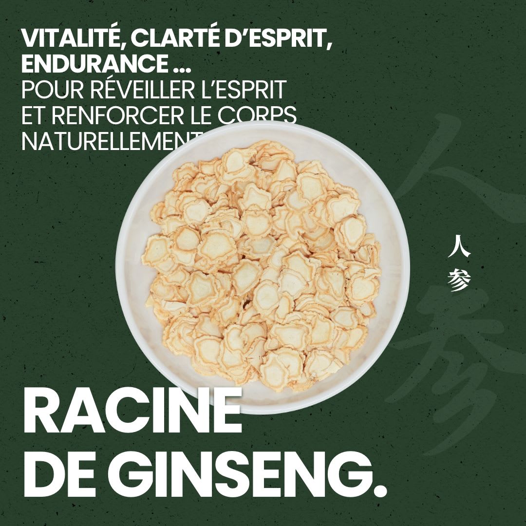 Considéré dans la médecine traditionnelle chinoise comme le « remède sacré pour tonifier le Qi », le Ginseng est depuis des millénaires reconnu comme une racine essentielle pour nourrir l’énergie vitale et restaurer la vitalité. Il est considéré comme l’une des racines les plus précieuses d’Asie, jadis réservée aux empereurs et aux érudits. Symbole de vitalité depuis plus de deux millénaires, il reste aujourd’hui un pilier de la médecine traditionnelle chinoise. Sa réputation, qui traverse les siècles, repose sur sa capacité à renforcer l’énergie globale de l’organisme, raviver l’esprit et soutenir l’équilibre physique et mental.