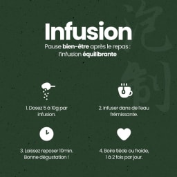 Goût subtil, légèrement amer et rafraîchissant. Une feuille ancienne pour accompagner les transitions de saison et alléger le quotidien en douceur.